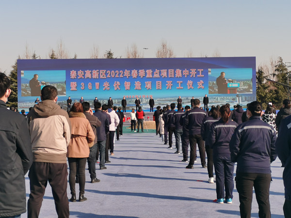 3月2日上午,泰安高新區(qū)2022年春季重點(diǎn)項(xiàng)目集中開(kāi)工暨年產(chǎn)3GW太陽(yáng)能光伏智造項(xiàng)目開(kāi)工儀式正式召開(kāi),開(kāi)工儀式由高新區(qū)黨工委書(shū)記、管委會(huì)主任劉斌主持,市領(lǐng)導(dǎo)楊洪濤、常緒擴(kuò)、張穎、宋洪銀及范福順、李勇參加。我公司英大電力裝備有限公司總經(jīng)理徐勇應(yīng)邀出席。
