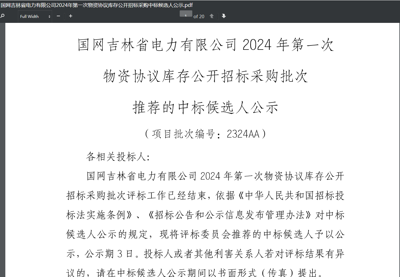 恭喜我公司中標(biāo)國(guó)網(wǎng)吉林省電力有限公司2024年第Yi次物資協(xié)議庫(kù)存公開招標(biāo)采購(gòu)項(xiàng)目